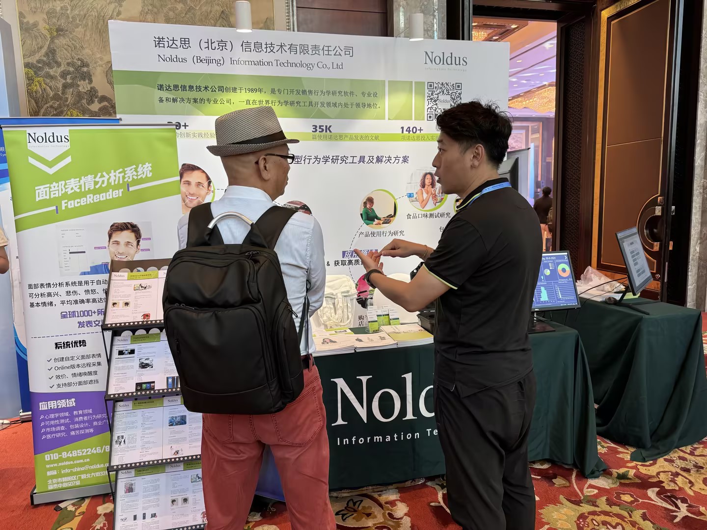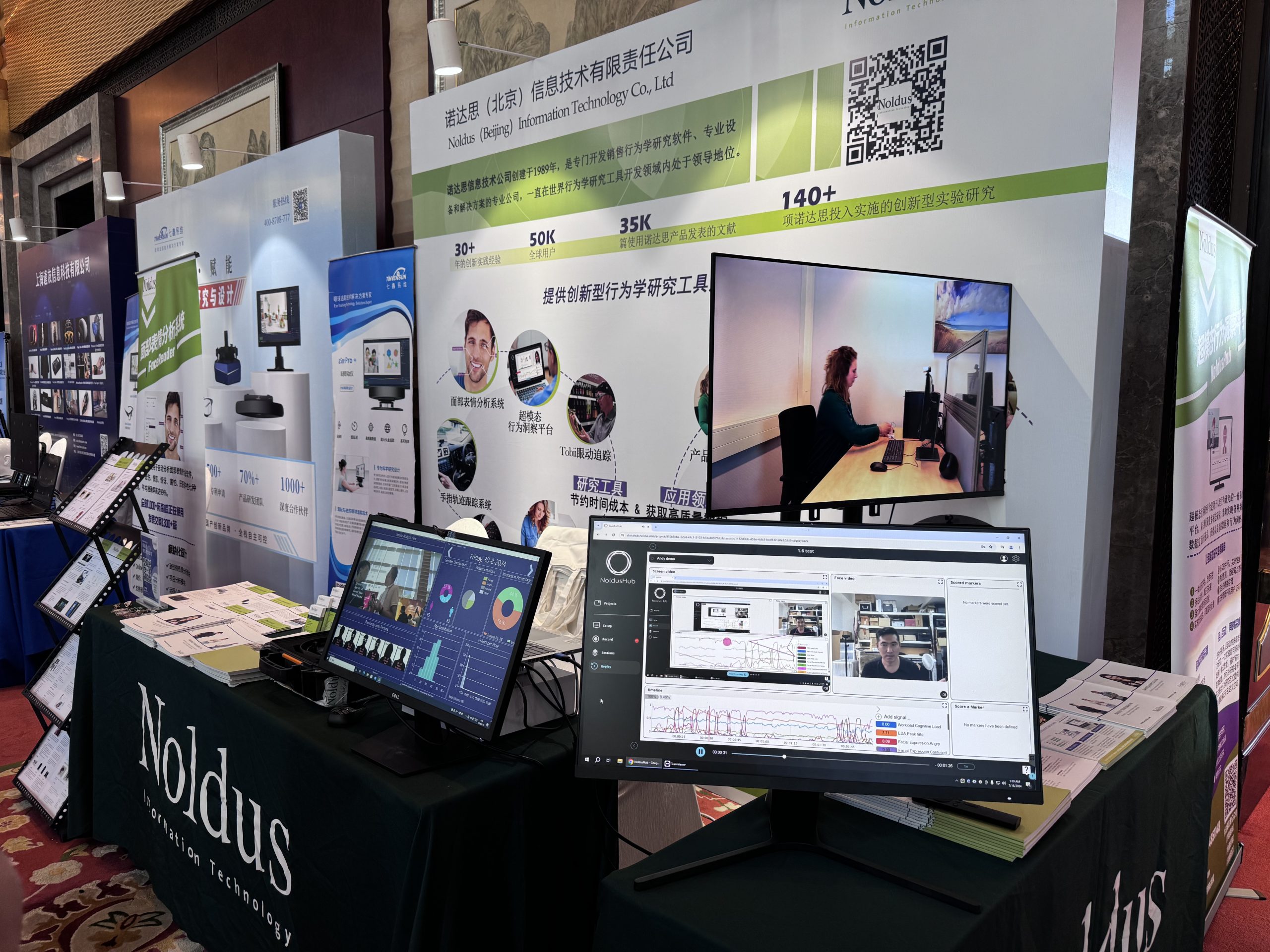 诺达思致力于开发和销售人因工程研究工具和创新型解决方案,在本次论坛中作为展览单位,展示了包括超模态行为洞察平台(NoldusHub)、面部表情分析系统(FaceReader)、行为测定快速复盘系统(Viso)、行为观察记录分析系统(The Observer XT)、手指轨迹跟踪系统(Finger Tracking)、多人面部表情分析系统(Vicar Analytics)、BIOPAC、Tobii Pro Glasses眼动仪、便携式近红外脑成像系统Brite MK III等多种创新型人类行为学研究的设备和软件,以及最新研究成果和应用案例。并与来自各个高校与企业的科研人员深度讨论了服务于用户体验研究的创新型研究工具与方案。吸引众多嘉宾驻足参观并深入了解,为广大学者和技术人员提供更多研究可能。