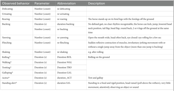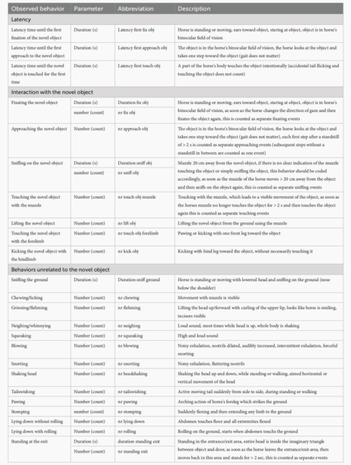 Klitzing, Lara, et al. “Exploring factors that influence the behavior response to novel object tests in young thoroughbred horses: investigating sex, test site and auction history.” Frontiers in Veterinary Science 11 (2025): 1478350.