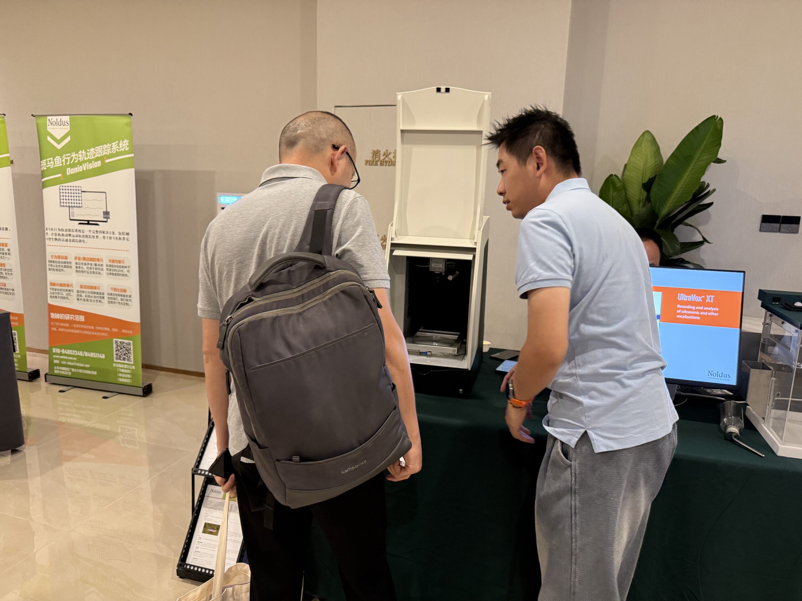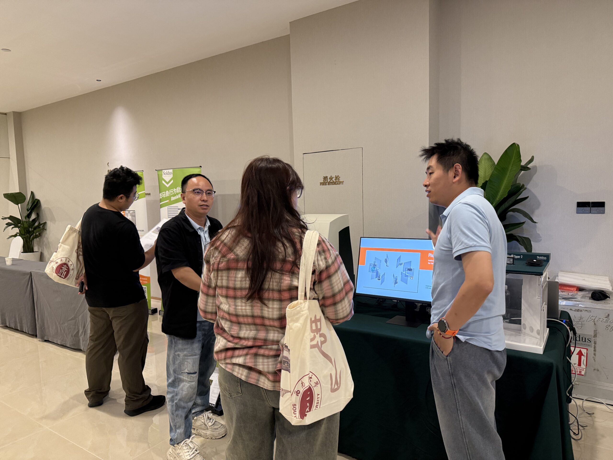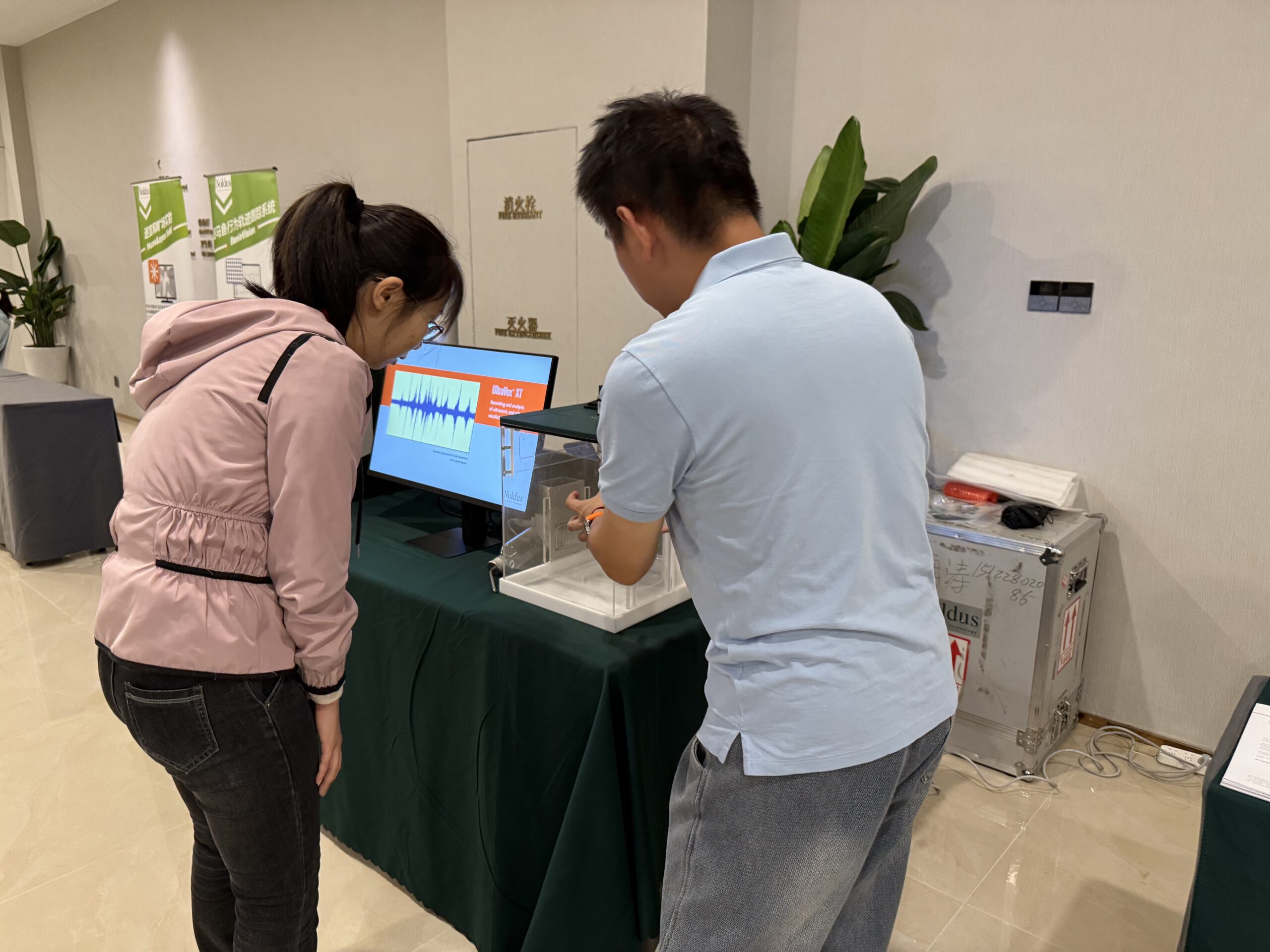 作为在行为学研究领域领导者,诺达思公司在此次交流会中参展,展出了其在精神药理研究的一系列先进的动物行为学产品与解决方案,成为会场瞩目的焦点。展出的产品和解决方案包括:动物运动轨迹跟踪系统(EthoVision XT),动物步态分析系统(CatWalk XT),斑马鱼行为轨迹跟踪系统(DanioVision),斑马鱼微视行为分析系统(DanioScope),鼠类家居行为活动观测箱(PhenoTyper),三维运动轨迹跟踪系统(Track3D)等。展台吸引众多嘉宾驻足参观并深入了解。