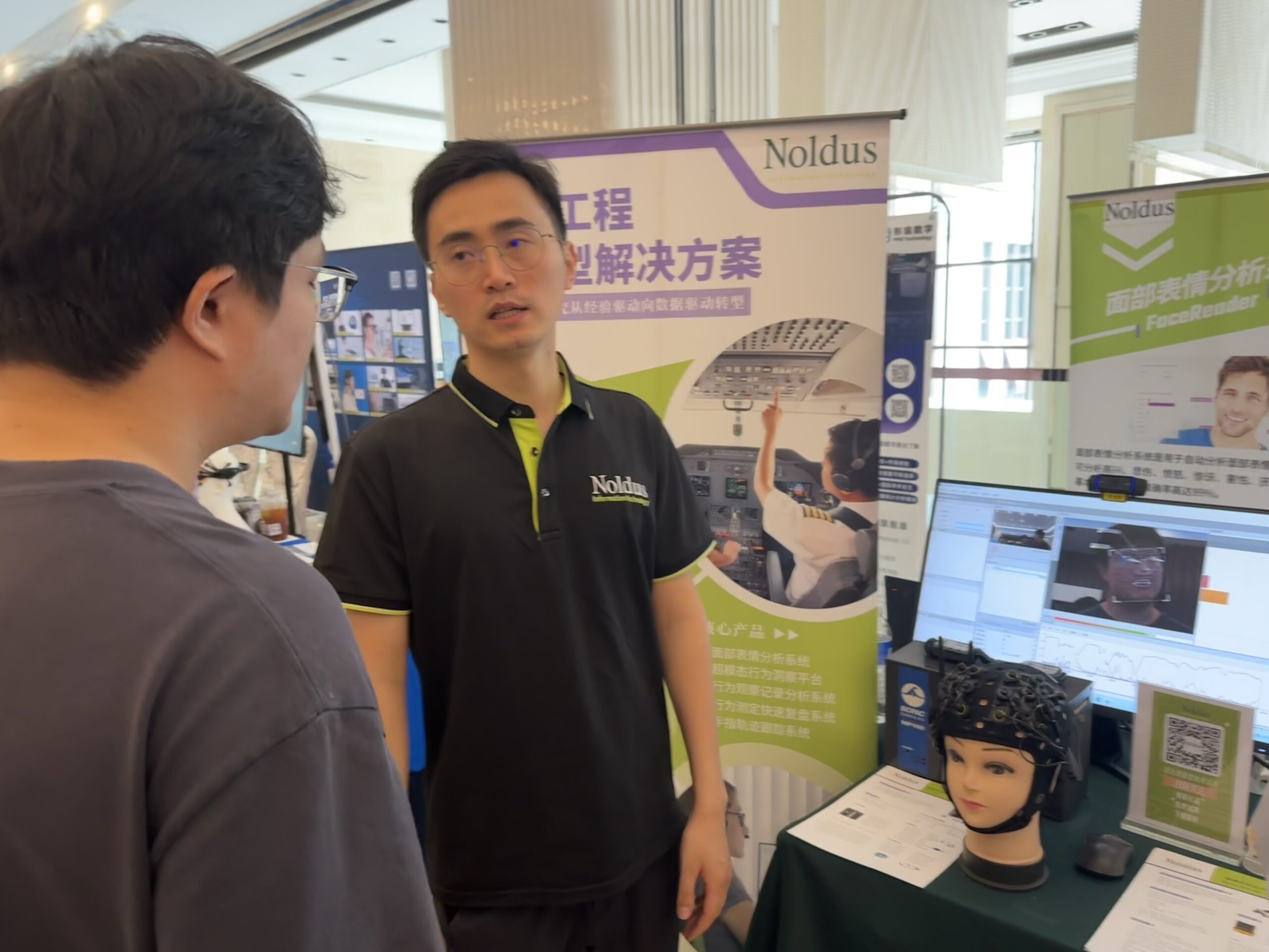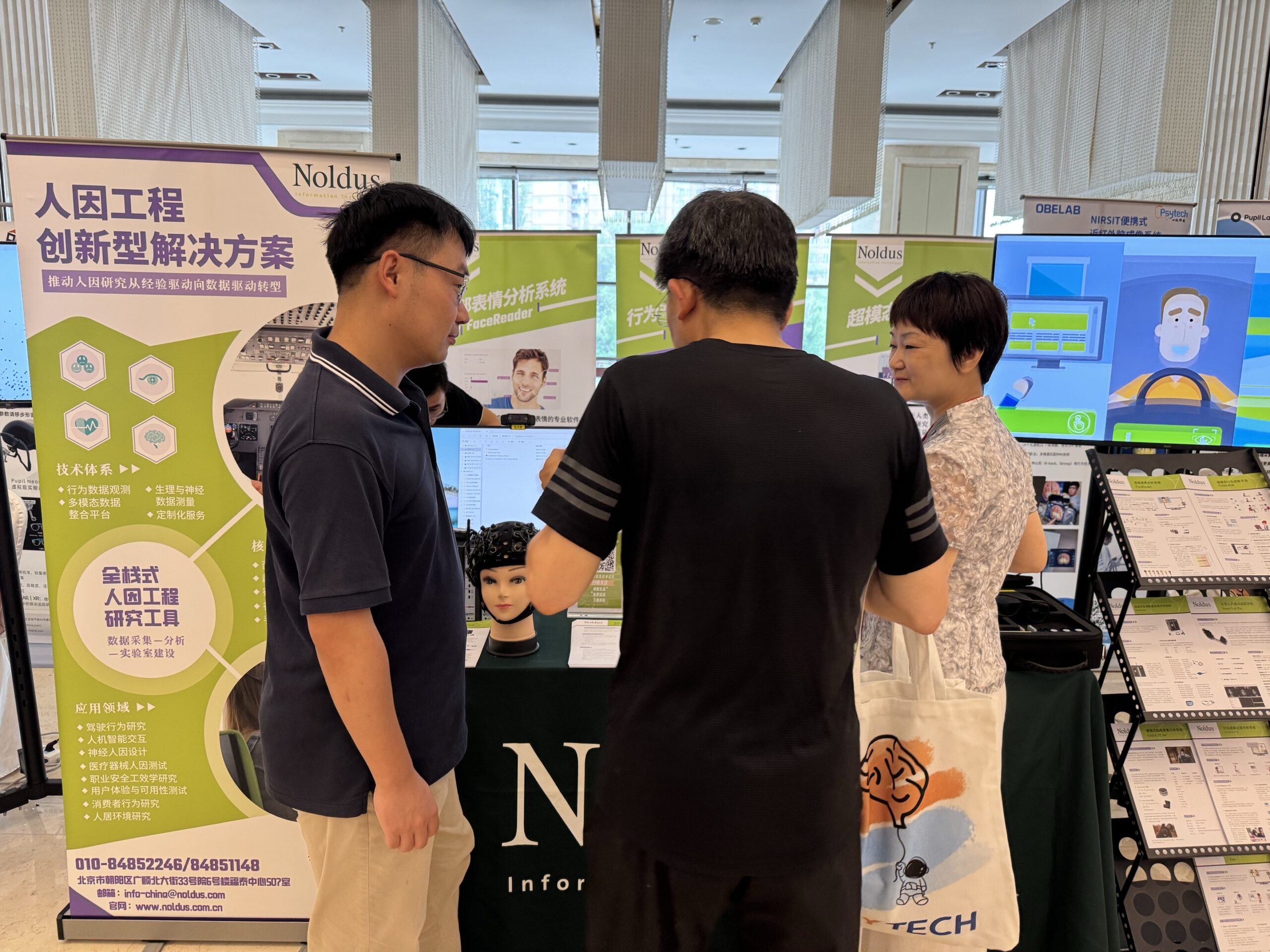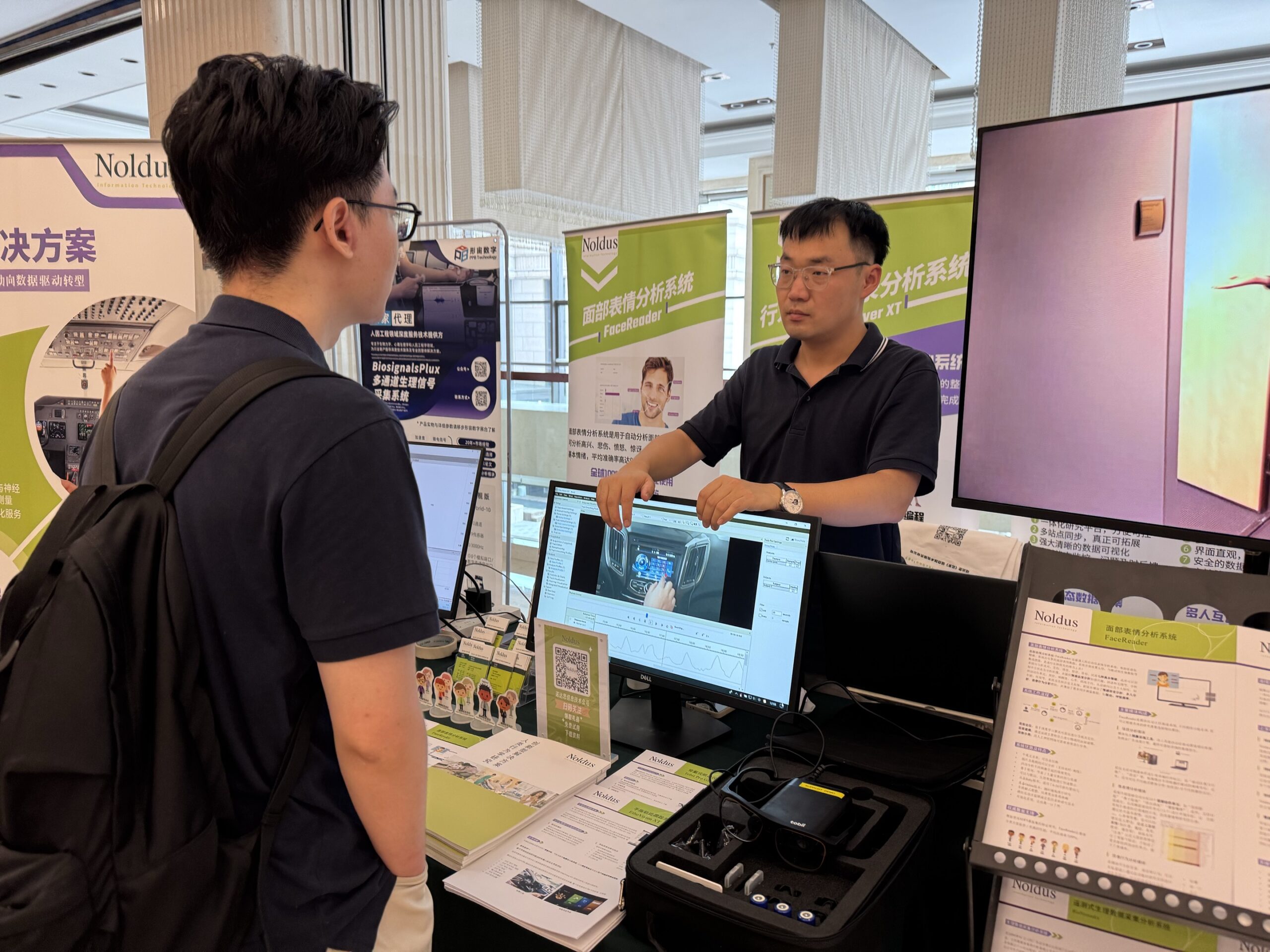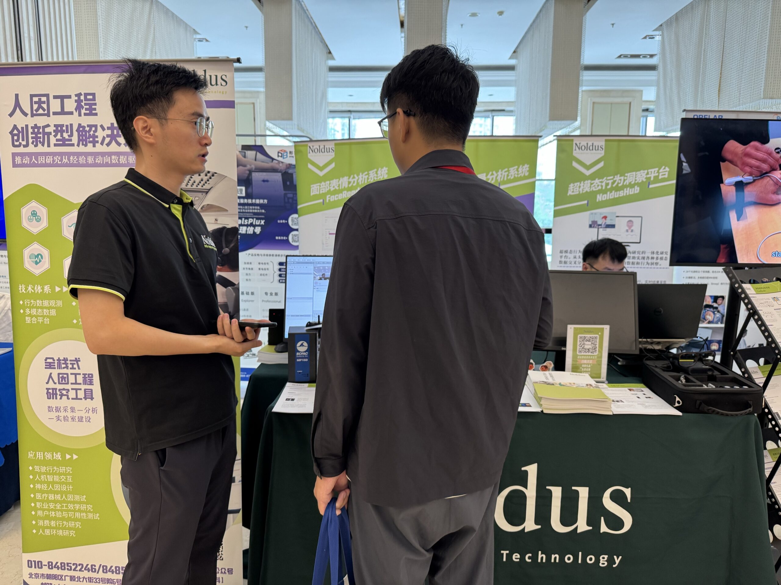 诺达思致力于开发和销售人因工程与工效学研究工具和创新型解决方案,在本次论坛中作为展览单位,展示了包括超模态行为洞察平台(NoldusHub)、面部表情分析系统(FaceReader)、行为测定快速复盘系统(Viso)、行为观察记录分析系统(The Observer XT)、手指轨迹跟踪系统(Finger Tracking)、BIOPAC、Tobii Pro Glasses眼动仪、便携式近红外脑成像系统Brite MK III等多种创新型人类行为学研究的设备和软件,以及最新研究成果和应用案例。与来自各个高校与企业的科研人员深度讨论了服务于人因工程与工效学以及相关人类行为学研究的创新型研究工具与方案,为广大学者和技术人员提供更多研究可能。
