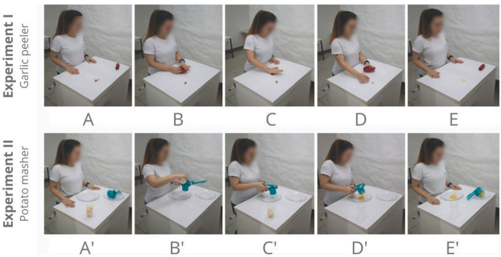 选用了两种厨具:剥蒜器和土豆捣碎器。每种厨具均提供绿色、红色和灰色三种颜色(图1)。确保实验材料在功能上的一致性,仅色彩作为自变量。